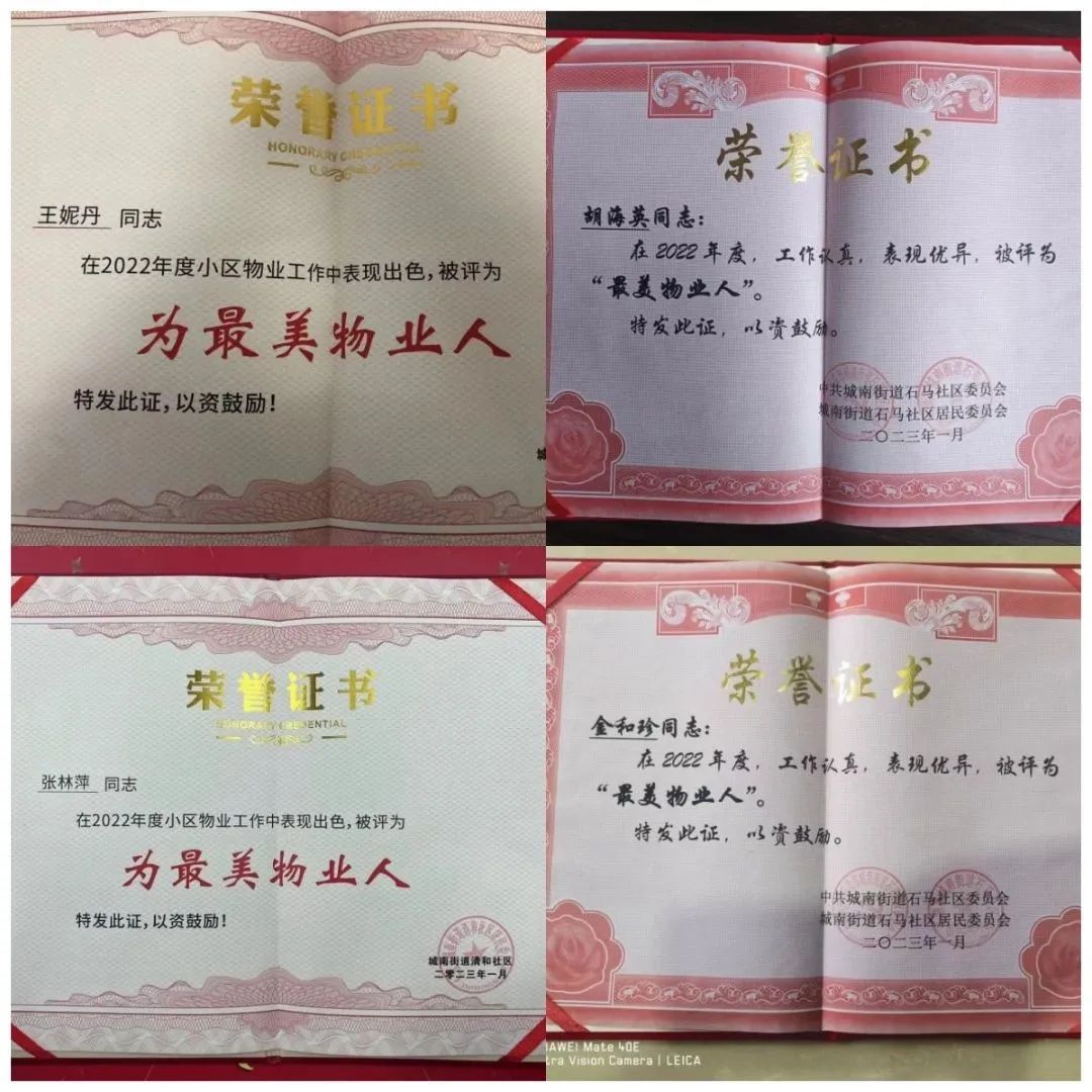 我司在管項(xiàng)目香江麗苑項(xiàng)目經(jīng)理金和珍、錦悅園項(xiàng)目經(jīng)理胡海英、中馳湖濱項(xiàng)目經(jīng)理張林萍、人才大廈項(xiàng)目經(jīng)理王妮丹被評(píng)為2022年度社區(qū)“最美物業(yè)人”,感謝她們?cè)谔厥鈺r(shí)期舍小家顧大家,夜以繼日的忘我工作,以及在協(xié)同治理、共同抗疫、提升服務(wù)、助力創(chuàng)城等工作中做出的突出貢獻(xiàn)。