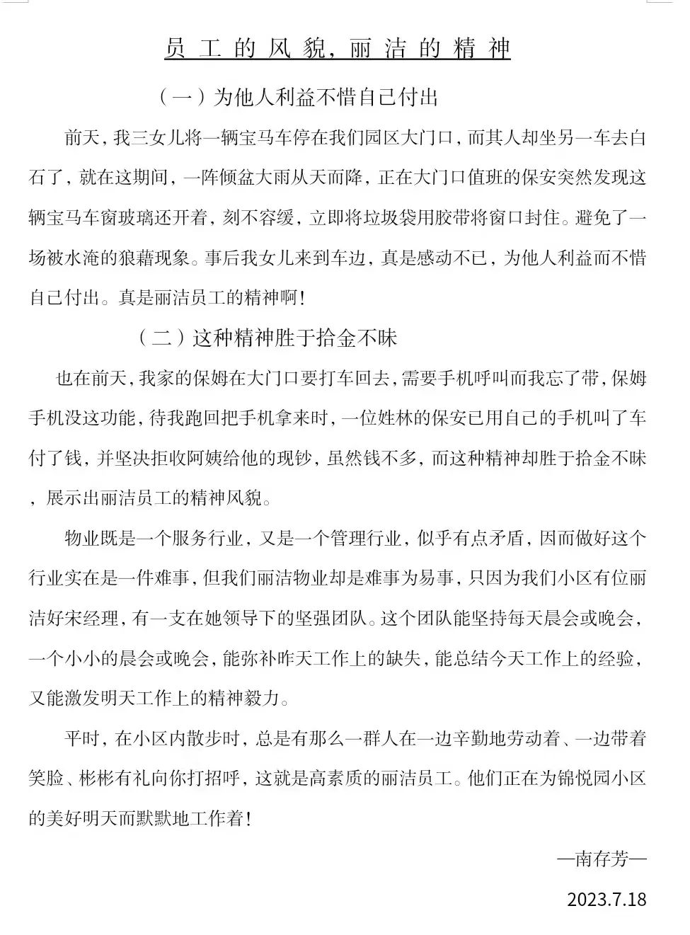 這是一封來(lái)自業(yè)主的感謝信,字字真切,句句肺腑,紙短情長(zhǎng),道不盡物業(yè)與業(yè)主之間的暖心故事。