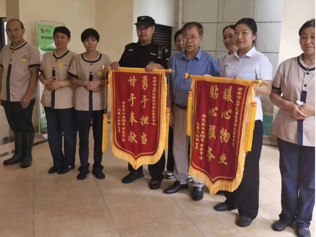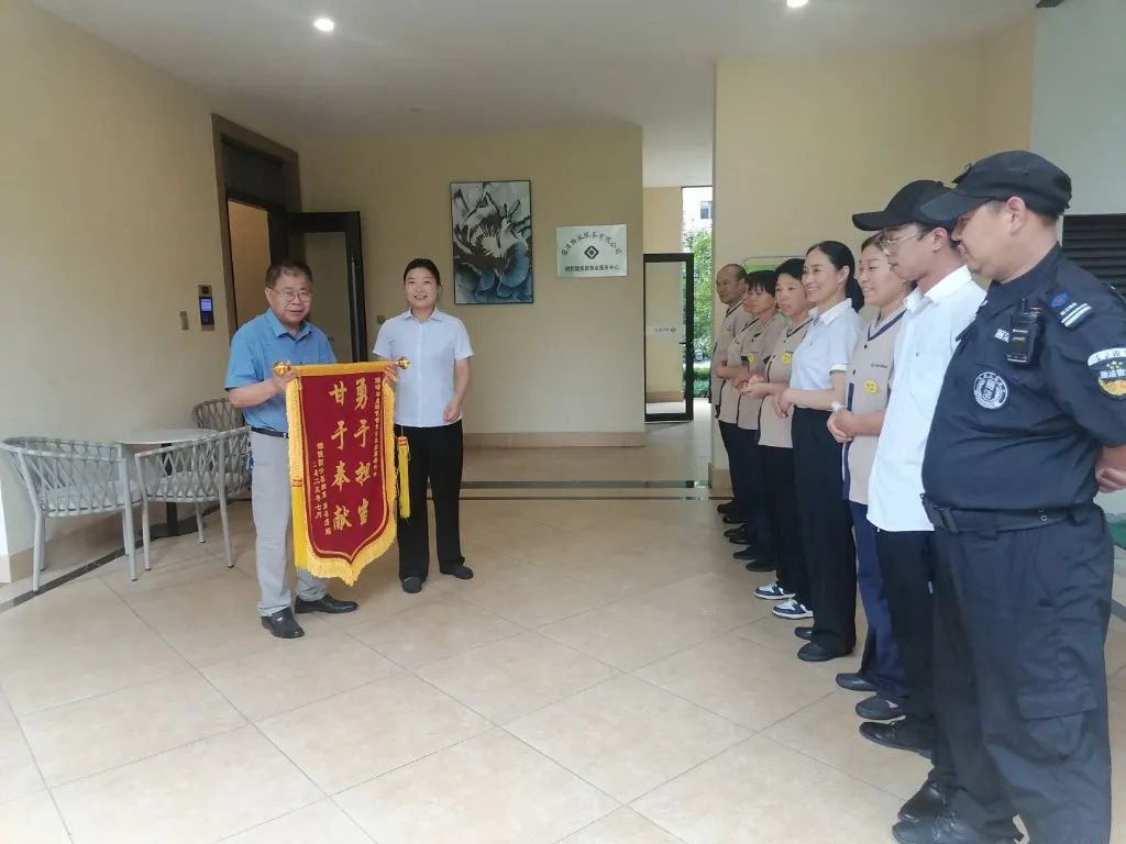 7月27日下午,錦悅園業(yè)主南先生冒雨來(lái)到小區(qū)物業(yè)服務(wù)中心,在錦悅園工作人員的見(jiàn)證下,將兩面承載著濃厚情誼的錦旗贈(zèng)予當(dāng)事人,贊揚(yáng)了物業(yè)經(jīng)理帶隊(duì)有方,并對(duì)物業(yè)工作給予了高度的肯定。