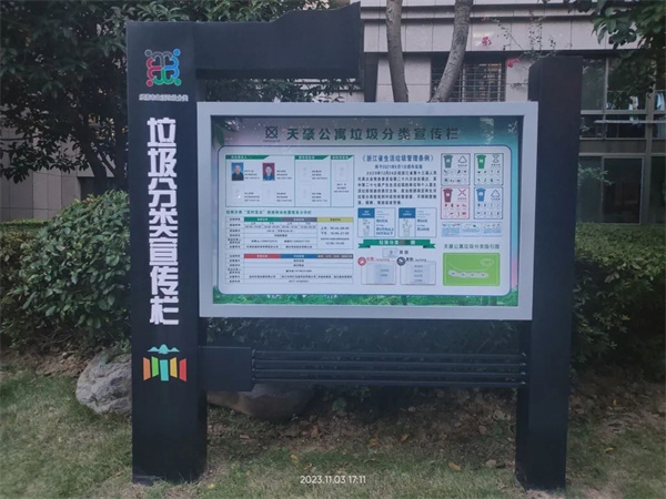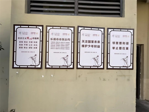 規(guī)格統(tǒng)一,色調(diào)一致,公益廣告干凈整潔,小區(qū)的文明程度,折射出我們城市的文明程度,人才大廈、天豪公寓的各個角落充滿著“公益宣傳好”的影子。
